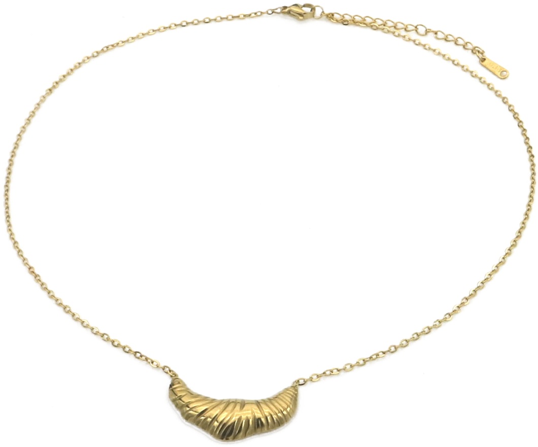 Maak kennis met de F-C9.2 N2591-017G roestvrijstalen ketting, een prachtig stuk dat moeiteloos elegantie en eigentijdse stijl combineert. Deze prachtige ketting heeft een uniek croissantontwerp en voegt een vleugje verfijning toe aan elke outfit. Het is gemaakt van hoogwaardig roestvrij staal en is niet alleen duurzaam, maar ook bestand tegen aanslag, waardoor het jarenlang zijn glans behoudt.