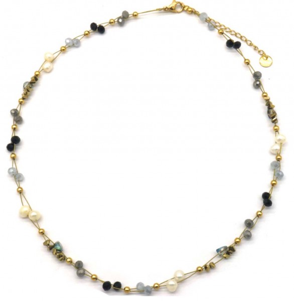 Deze ketting is vervaardigd van roestvrij staal van hoge kwaliteit en is niet alleen duurzaam, maar ook bestand tegen aangetasting, waardoor het zijn glans en schoonheid in de loop van de tijd behoudt. De stofdetails voegt een unieke textuur toe, verbetert de algehele esthetiek en maakt het een veelzijdig stuk dat voor elke gelegenheid kan worden gedragen.