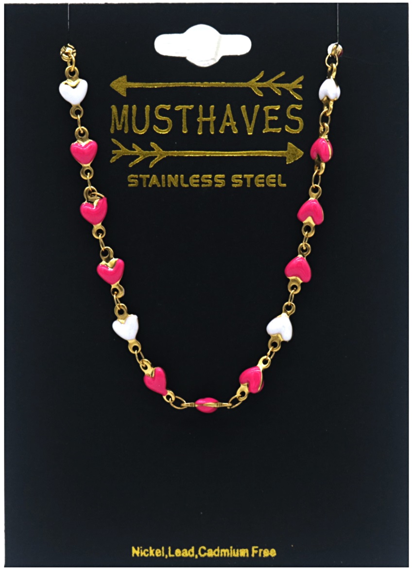 F-E21.2 B835-031G S. Steel Bracelet Hearts Pink White