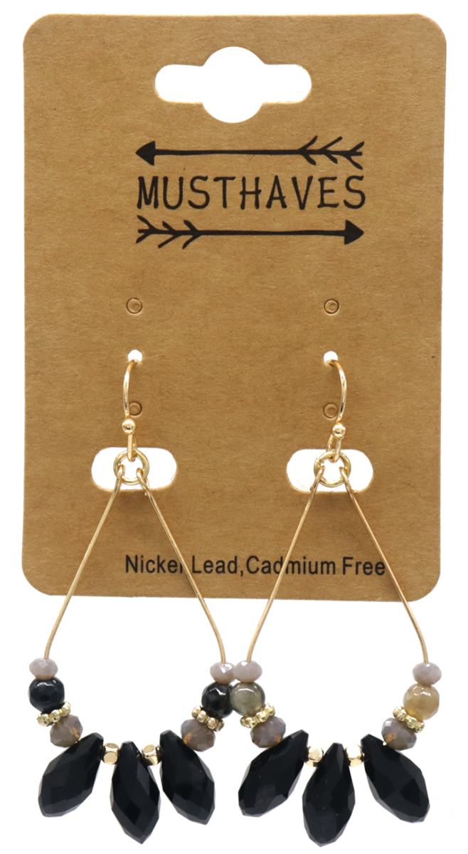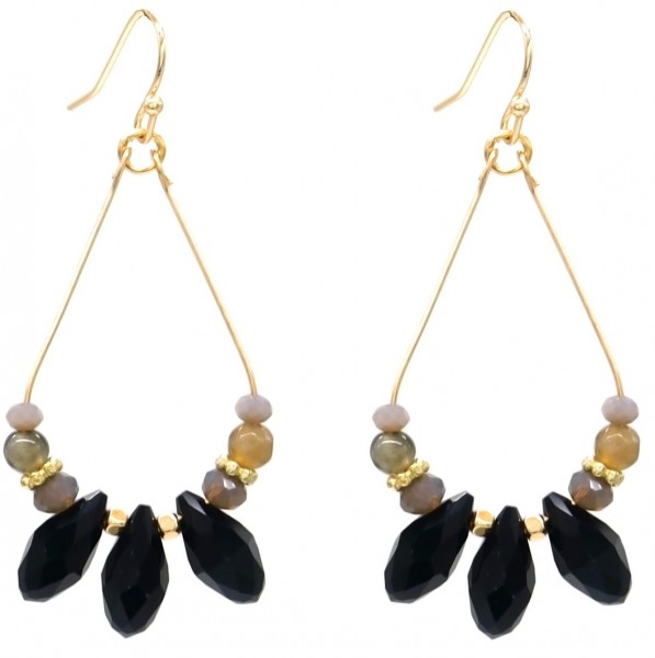 F-F20.4 E1660-017 Earrings Glassbeads 5x2cm Black