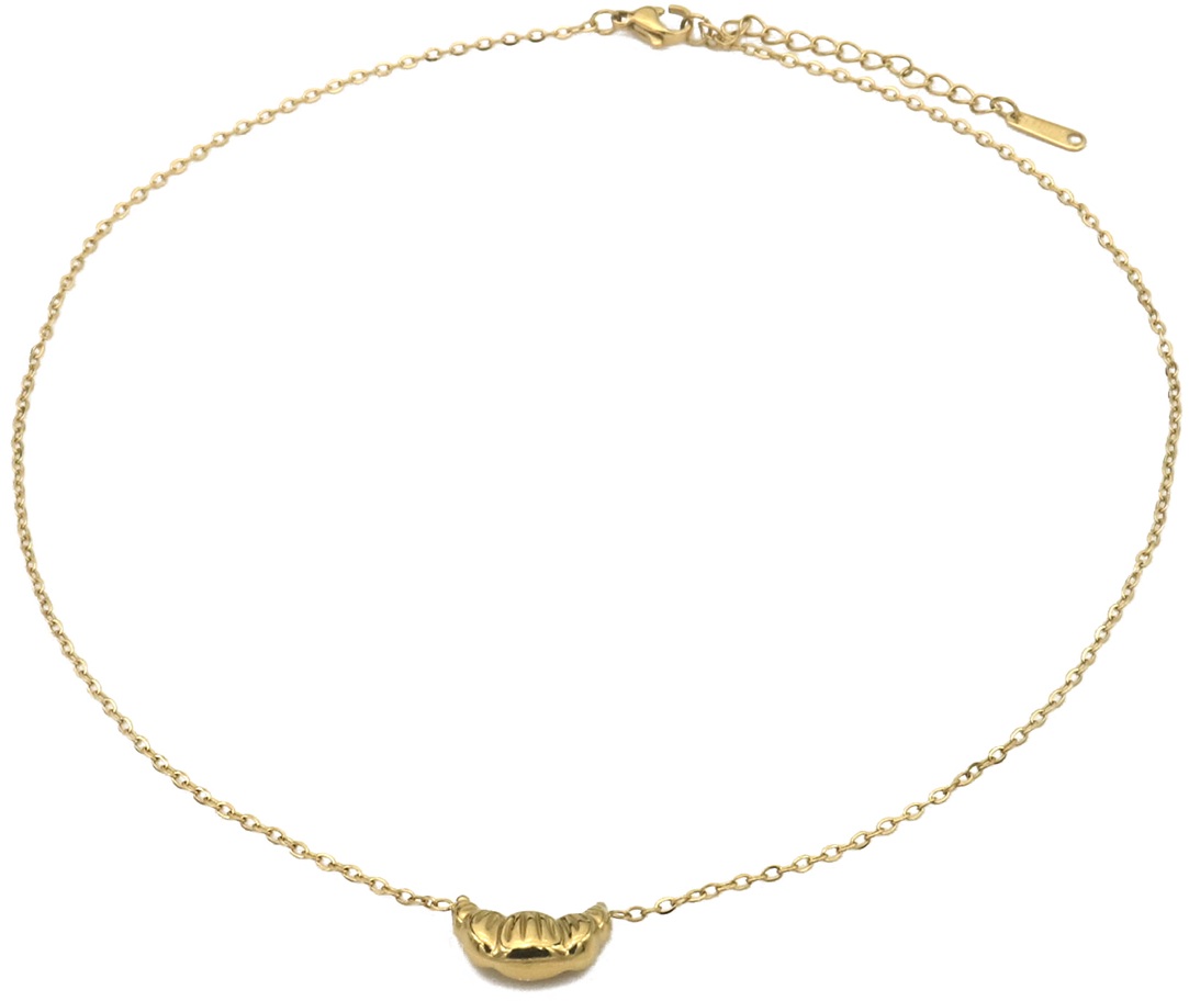 Maak kennis met de F-F21.1 N2591-001G roestvrijstalen ketting, een prachtig stuk dat moeiteloos elegantie en eigentijds design combineert. Deze prachtige ketting heeft een unieke hanger in de vorm van een croissant, die elke outfit een vleugje verfijning geeft. Het is gemaakt van hoogwaardig roestvrij staal en zorgt voor duurzaamheid en een glanzende afwerking die bestand is tegen aanslag, waardoor het perfect is voor dagelijks gebruik of speciale gelegenheden.