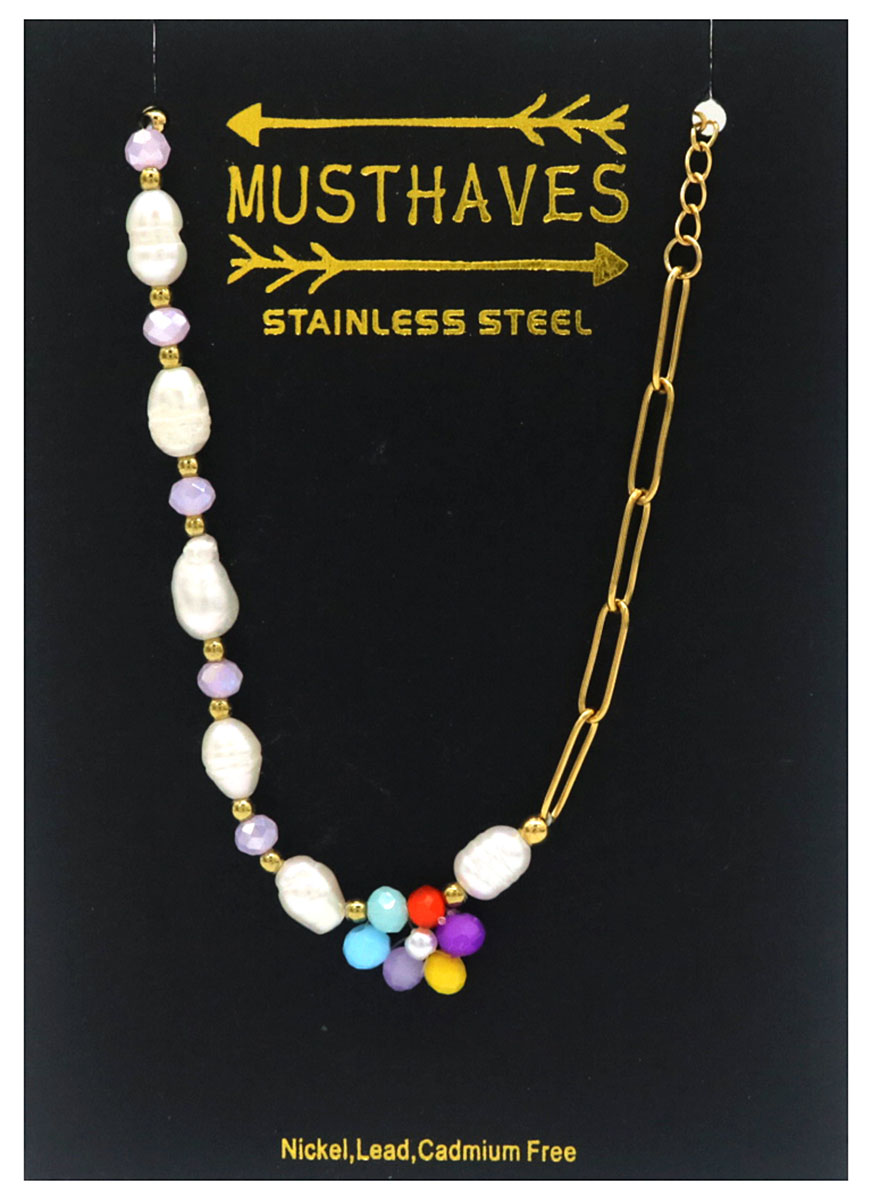 Productinformatie "G-A7.5 B626-004 S. Steel Bracelet Pearls Flower"