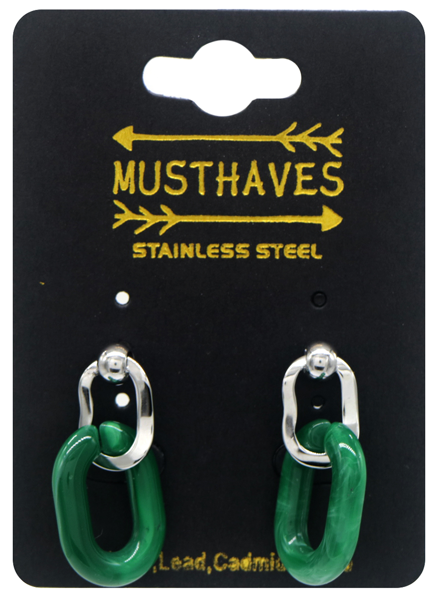 G-B17.4 E2275-015S S. Steel with Acrylic Earrings 2.8cm Green