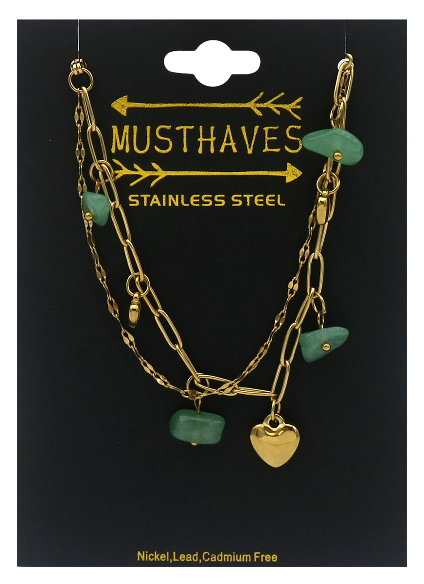 Maak kennis met de G-B5.4 B2583-032G-4 roestvrijstalen armband, versierd met charmante harten en prachtige stenen. Dit prachtige exemplaar is ontworpen voor polsmaten van 16 tot 21 cm, waardoor het een veelzijdig accessoire is voor elke gelegenheid. De prachtige groene stenen voegen een levendige toets toe en vormen een perfecte aanvulling op de strakke, goudkleurige roestvrijstalen afwerking.
