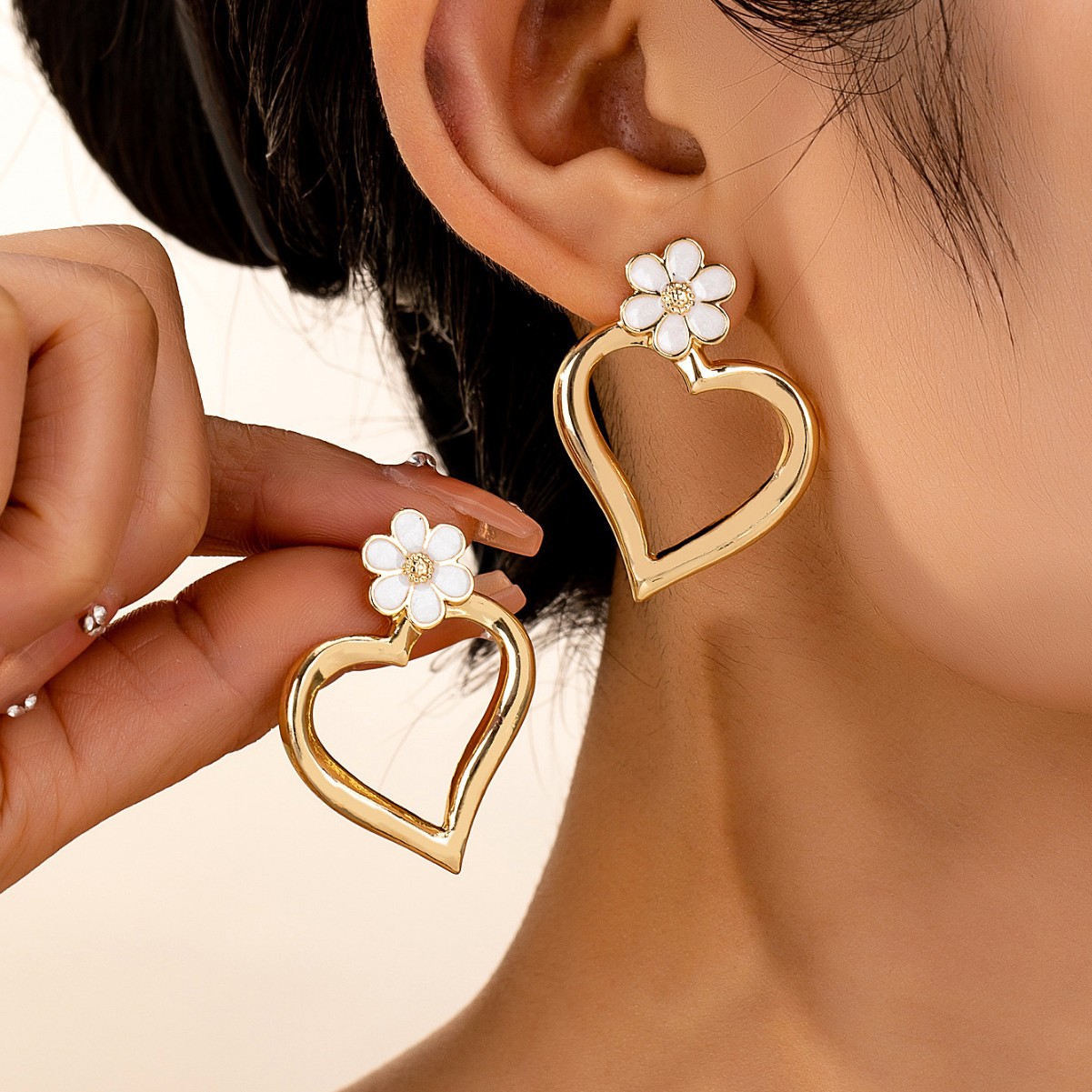 G-C21.2 E2591-159G Fashion Earrings Heart 3.5cm Gold