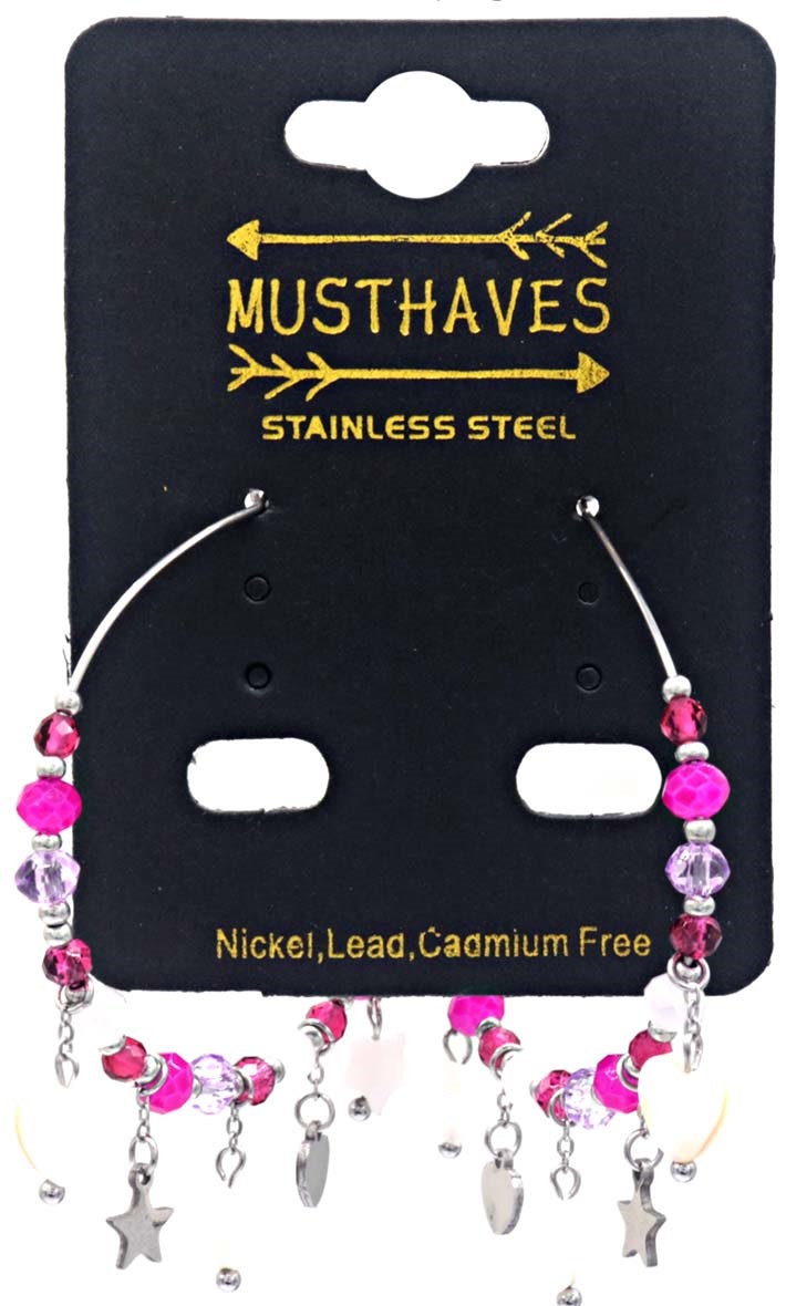 G-D19.1 E221-498 No. 11 S. Steel Glassbead Earrings 4x5.5cm
