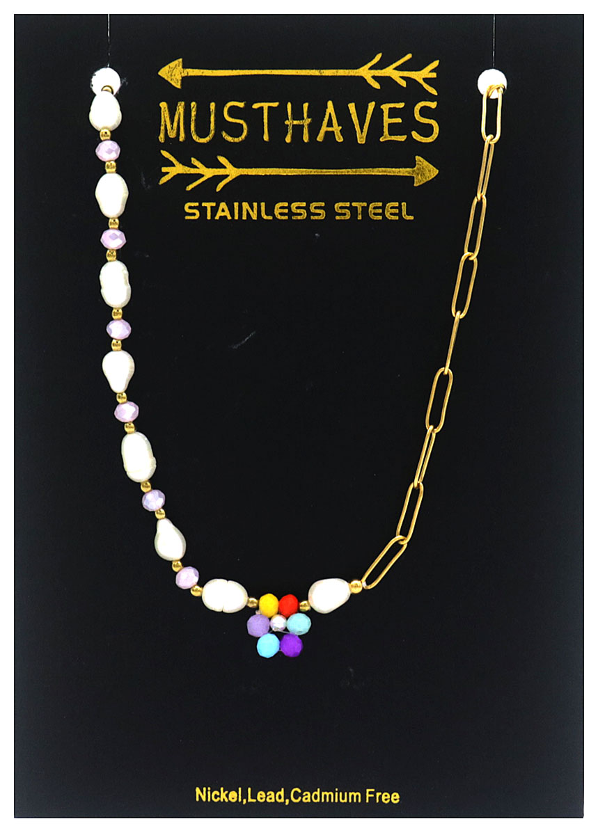 G-D21.2 N626-004 S. Steel Necklace Pearls Flower