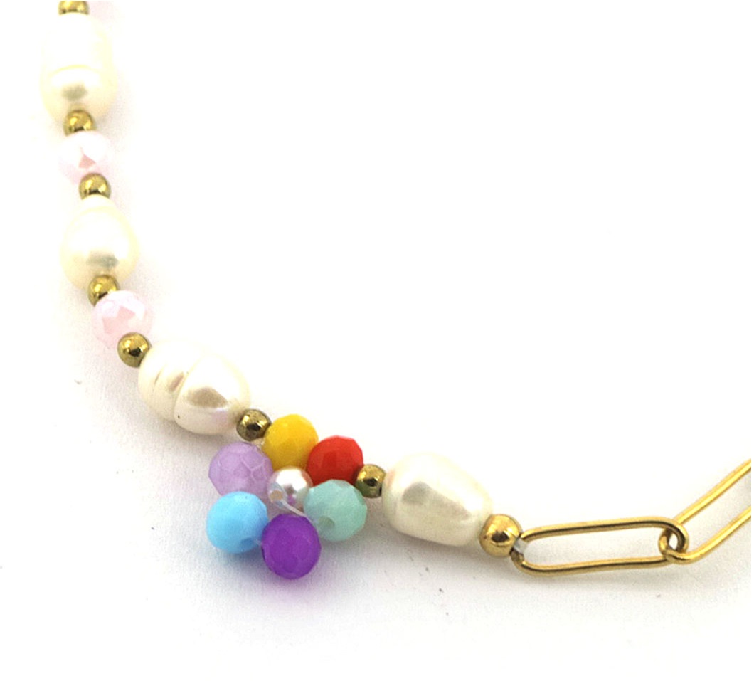 Productinformatie "G-D21.2 N626-004 S. Steel Necklace Pearls Flower"
