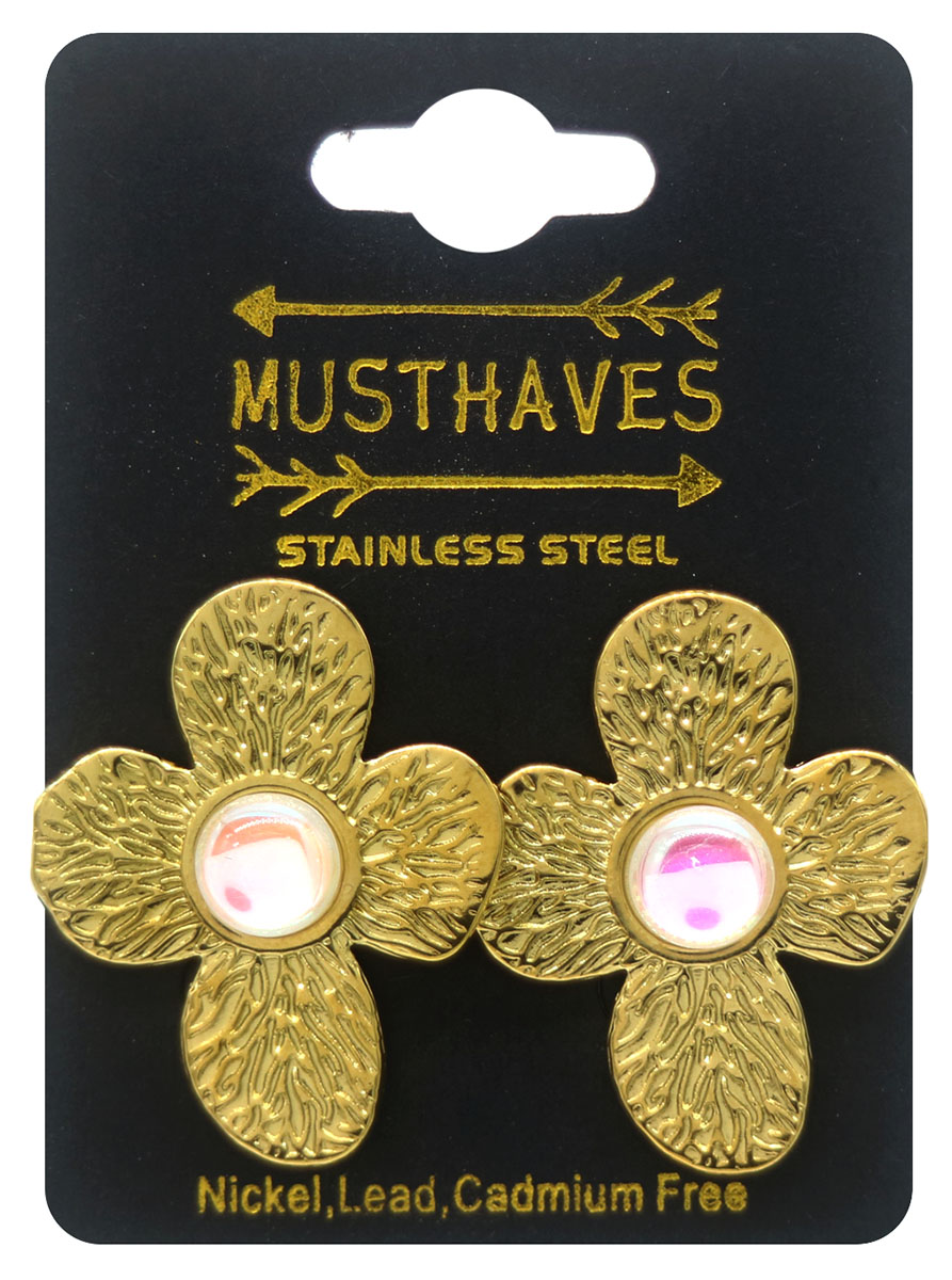 Stijlvol en onderhoudsarm, deze goudkleurige bloemoorbellen geven een verfijnde finishing touch aan elke outfit. Hun robuuste roestvrijstalen kern zorgt ervoor dat ze na verloop van tijd mooi blijven en vriendelijk blijven voor gevoelige oren.