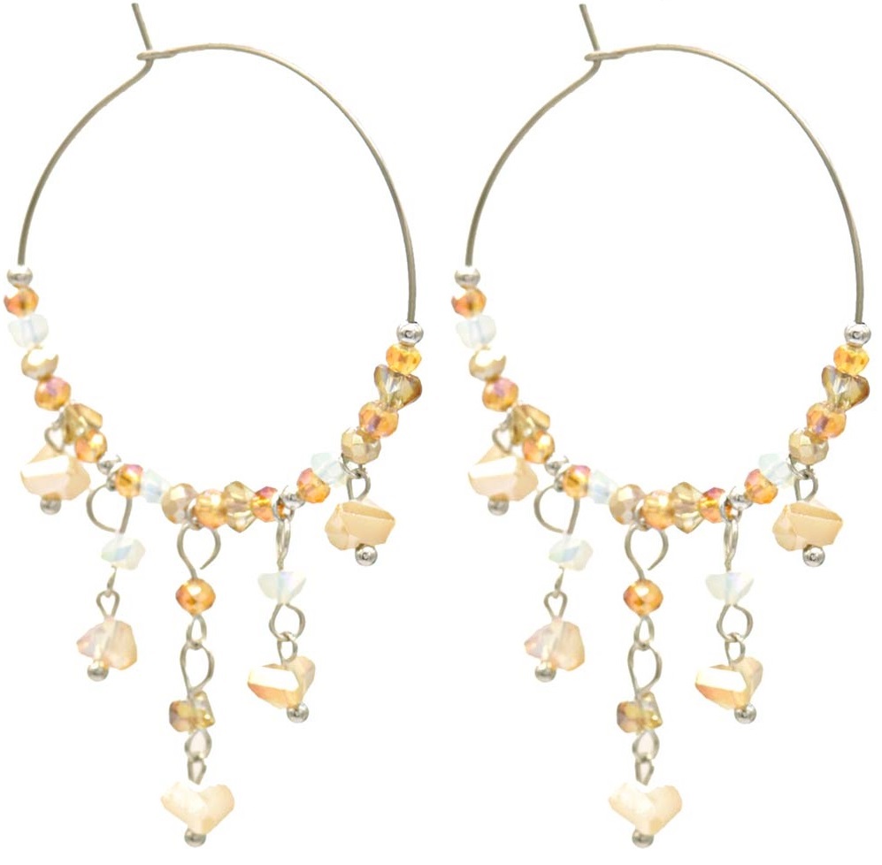 - Design: moderne oorbellen met bruine glaskralen en roestvrijstalen accenten