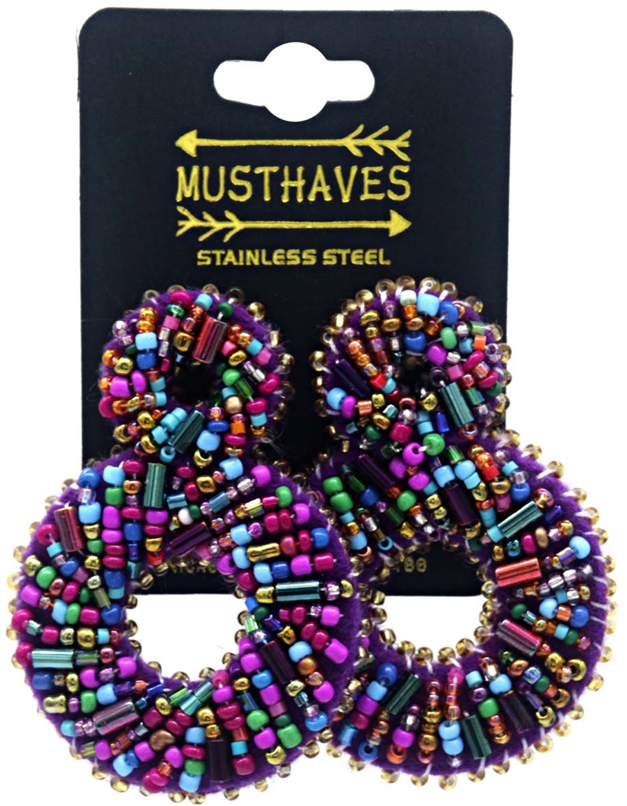 Productinformatie "H-A16.2 E221-502-2 S. Steel Earring Glassbeads 6cm Purple"