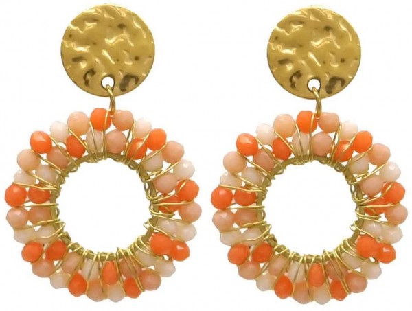 Productinformatie "H-A4.1 E221-473 S. Steel Earrings Glassbeads 3.5x2.5cm Orange"