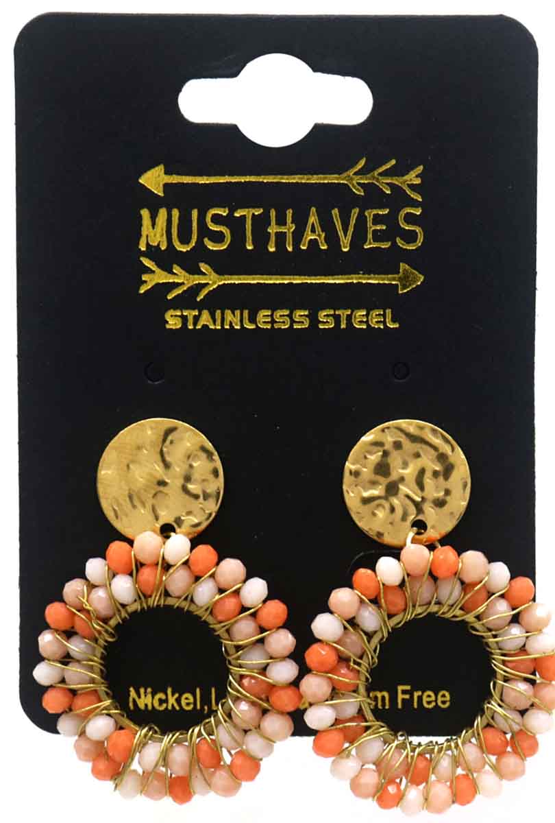 H-A4.1 E221-473 S. Steel Earrings Glassbeads 3.5x2.5cm Orange