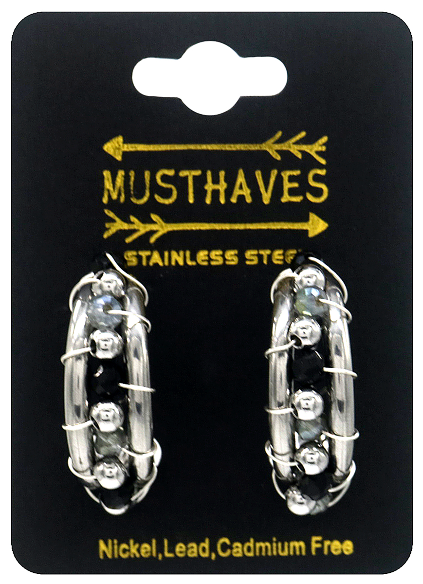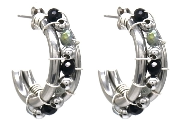 H-B20.2 E221-365S S. Steel Earrings Glassbeads Black