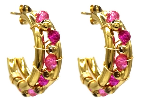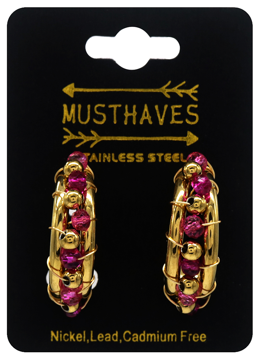 H-C20.5 E221-365G S. Steel Earrings Glassbeads Purple