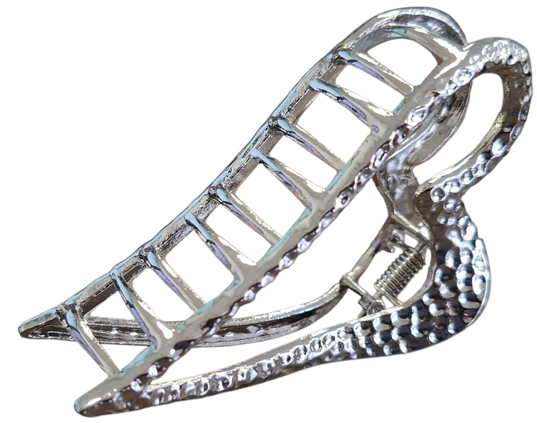 Maak kennis met de H-C23.1 H1039-013S metalen haarklauw in een prachtige zilveren afwerking. Dit elegante haaraccessoire heeft een hartvormig ontwerp van 8 cm, waardoor het de perfecte mix is van stijl en functionaliteit. Het is gemaakt van hoogwaardig metaal en biedt een veilige grip voor alle haartypes, zodat uw kapsel de hele dag op zijn plaats blijft. De glanzende zilveren tint voegt een vleugje verfijning toe, waardoor het een ideale keuze is voor zowel casual als formele gelegenheden. Til je haarspel naar een hoger niveau met deze chique en veelzijdige haarklem, ontworpen om elke outfit aan te vullen en je lokken prachtig gestyled te houden.