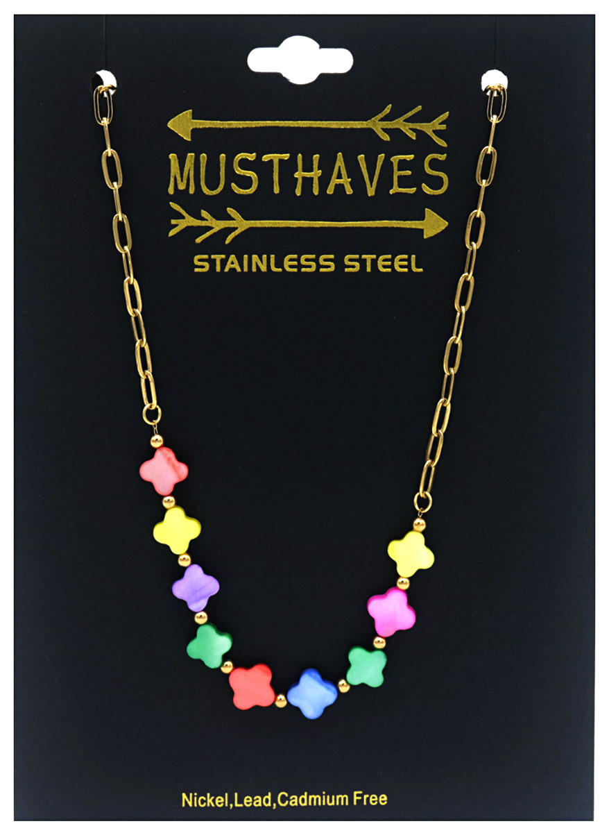 H-C7.1 N823-003G S. Steel Necklace Clovers