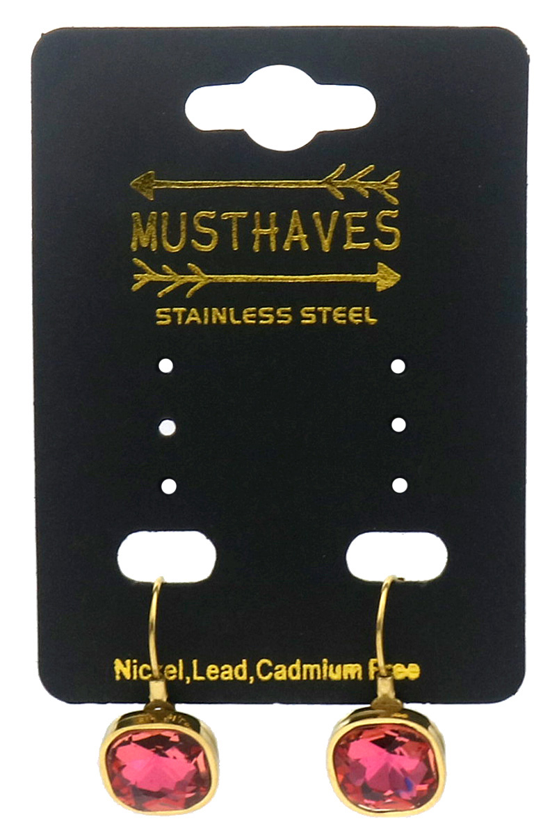 H-D6.3 E25106-075G-1 S. Steel Earrings Crystal 2.5cm Pink