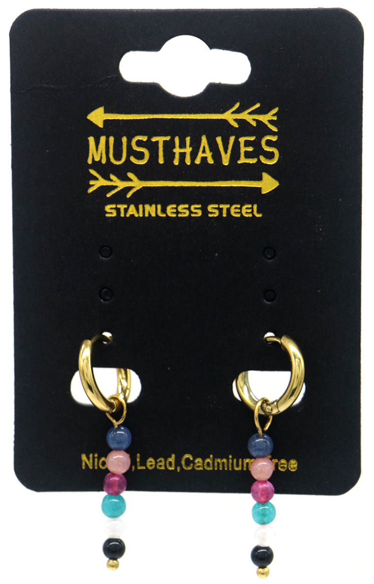 H-D7.5 E2275-009G S. Steel 10mm Earrings with Stones 3cm