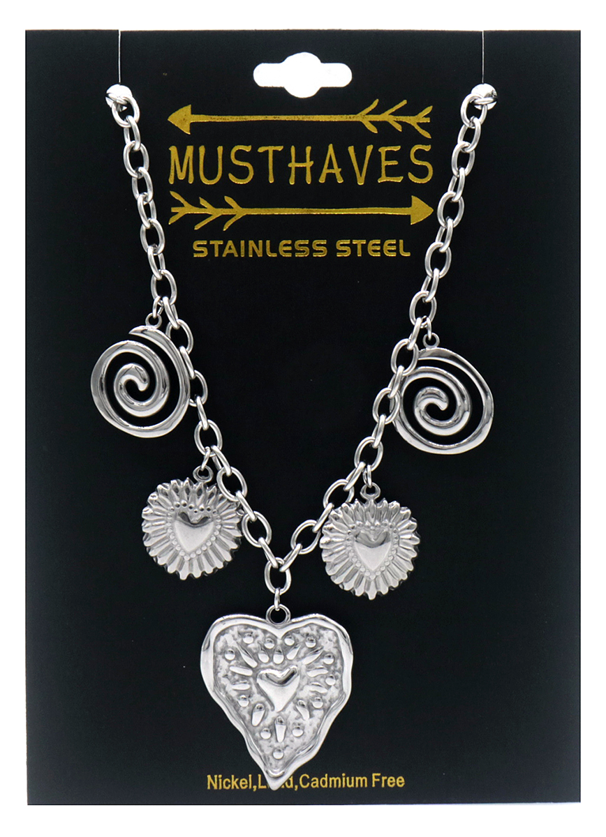 Maak kennis met de H-E14.2 N1160-001S roestvrijstalen ketting, een prachtig stuk ontworpen om uw accessoirecollectie naar een hoger niveau te tillen. Deze prachtige ketting heeft een unieke combinatie van hartjes en wervelingen, prachtig vervaardigd in hoogwaardig zilverkleurig roestvrij staal. Met een verstelbare lengte van 40-45 cm biedt hij veelzijdigheid en past hij bij elke halslijn of outfit.