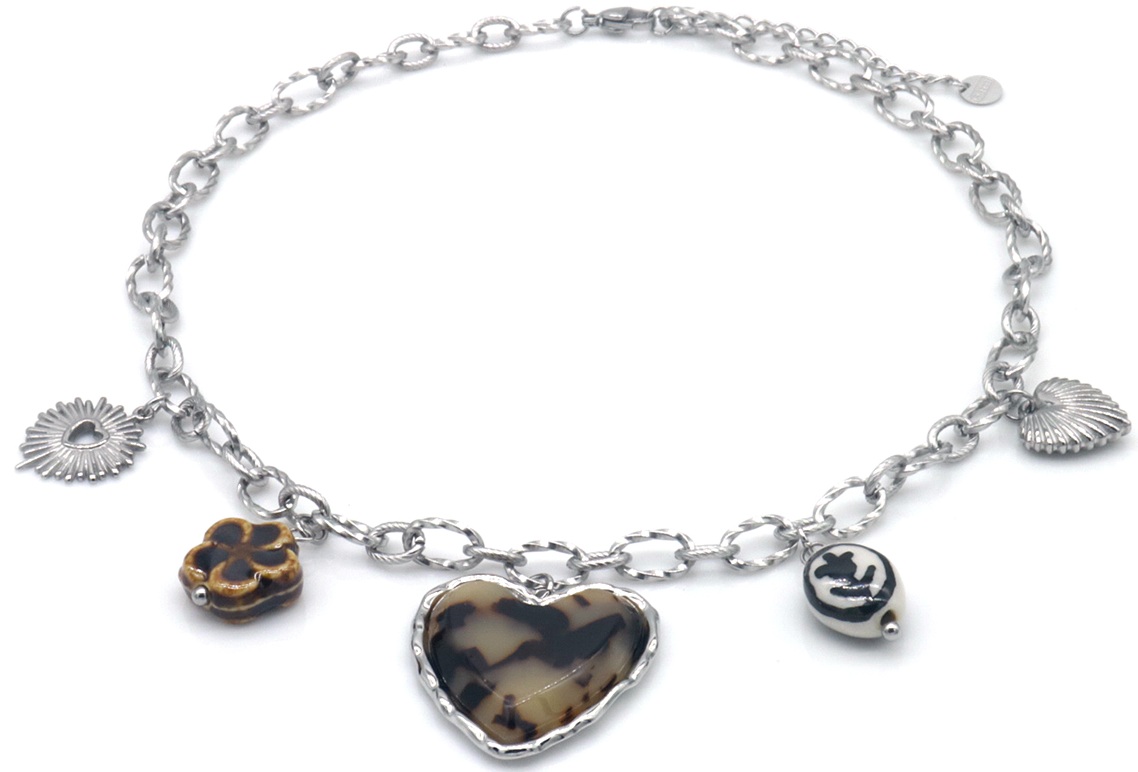 Productinformatie "H-E16.2 N1160-003S S. Steel Necklace XL Charms 40-45cm"