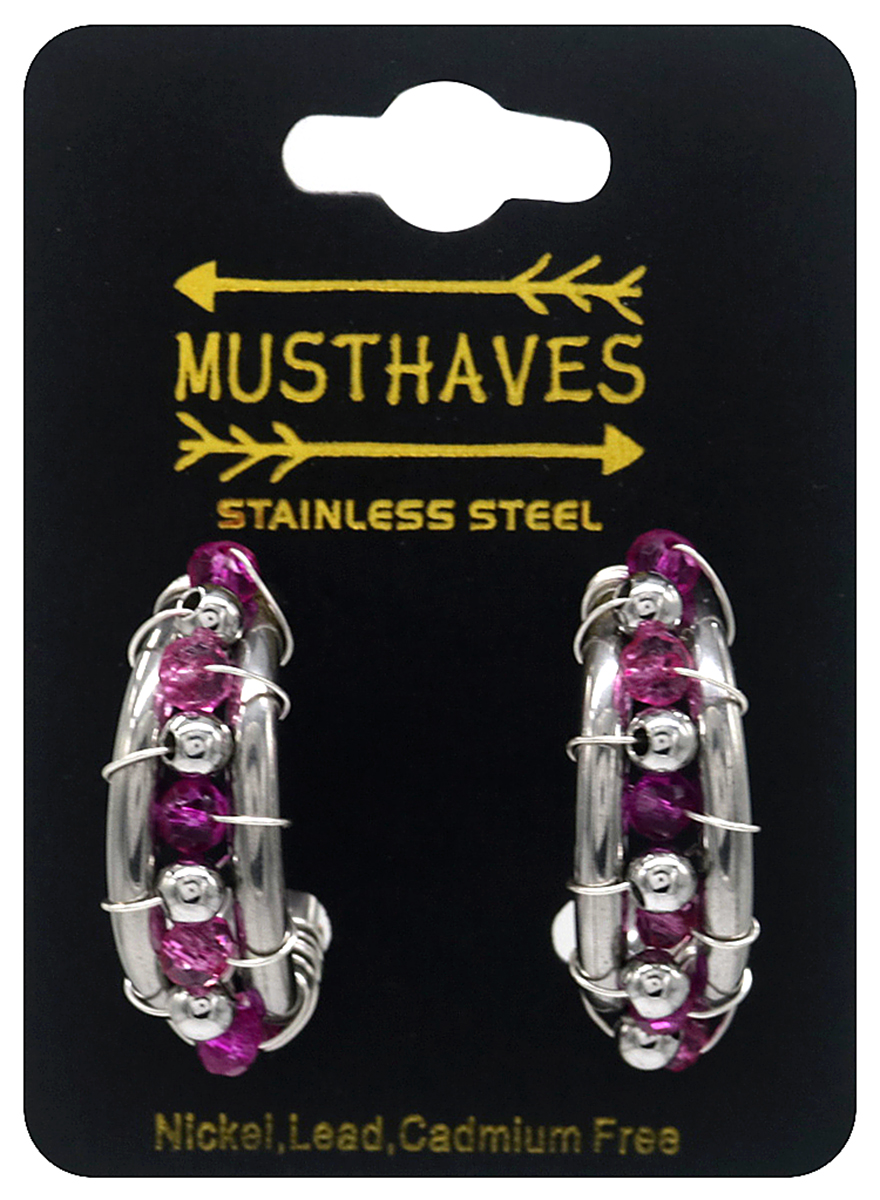 H-E5.4 E221-365S S. Steel Earrings Glassbeads Purple