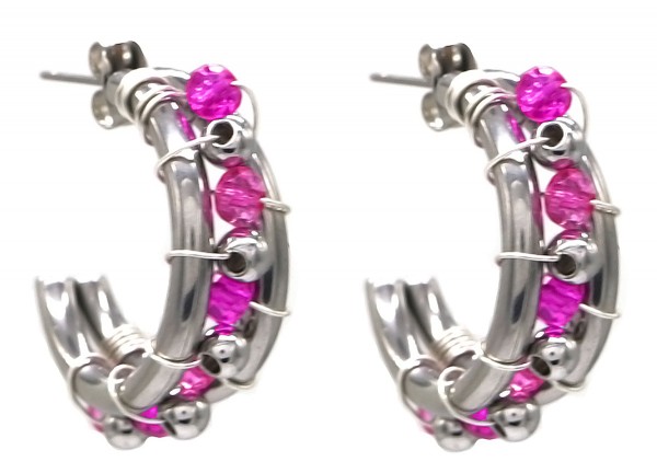 Productinformatie "H-E5.4 E221-365S S. Steel Earrings Glassbeads Purple"