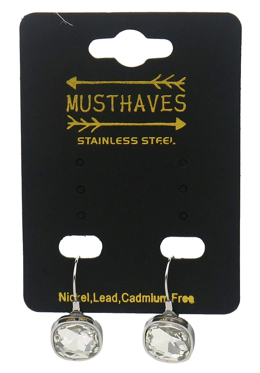 H-F17.3 E25106-075S-2 S. Steel Earrings Crystal 2.5cm White