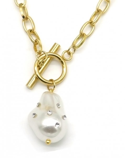 H-F22.2 N221-318G S. Steel Necklace Pearl Crystals