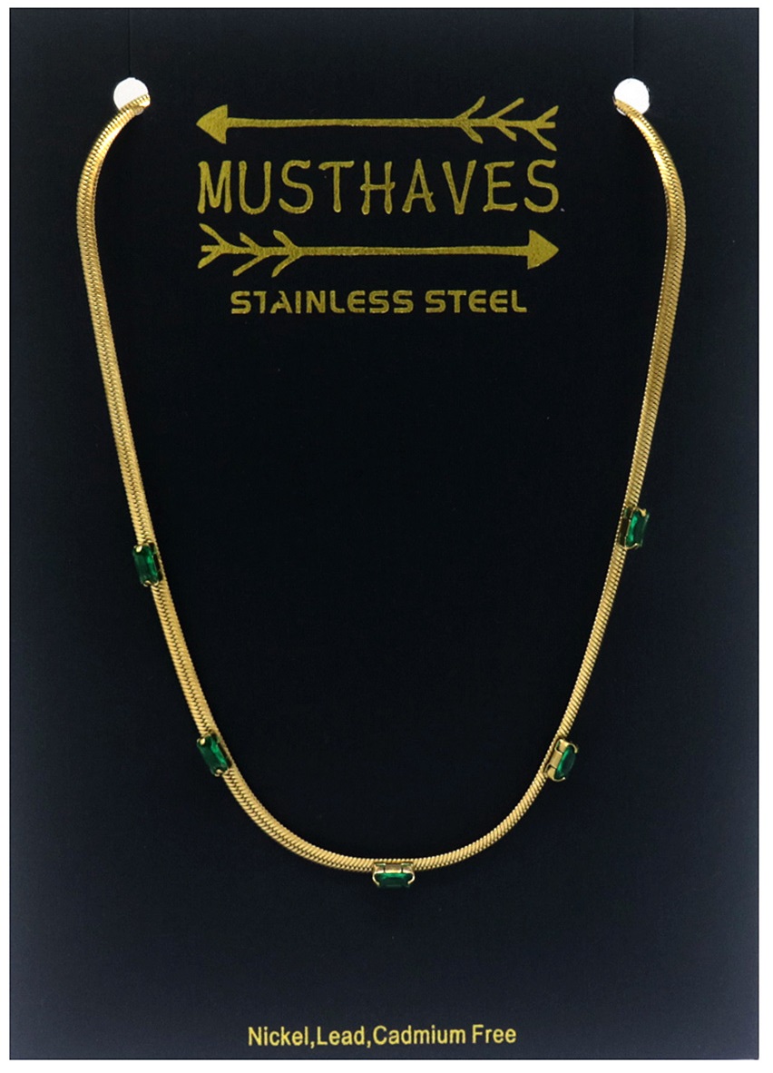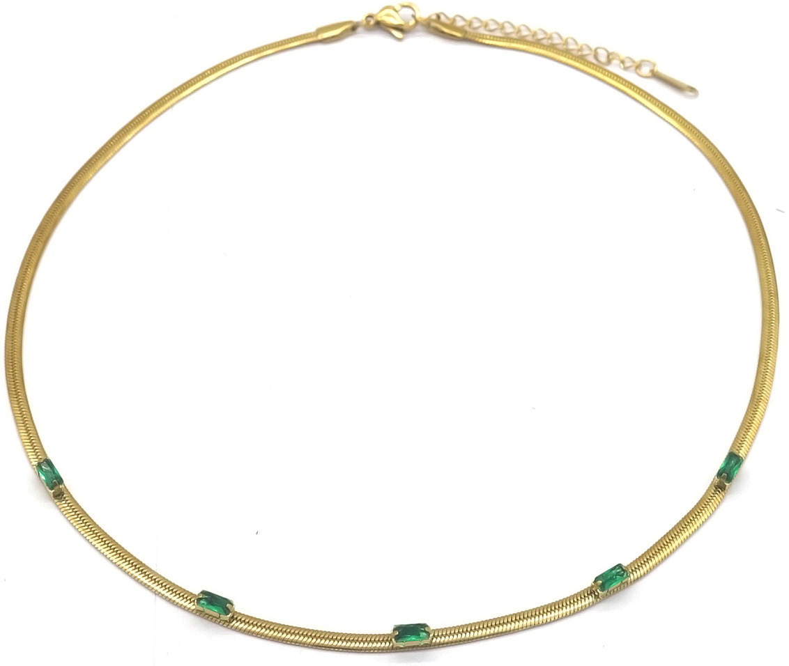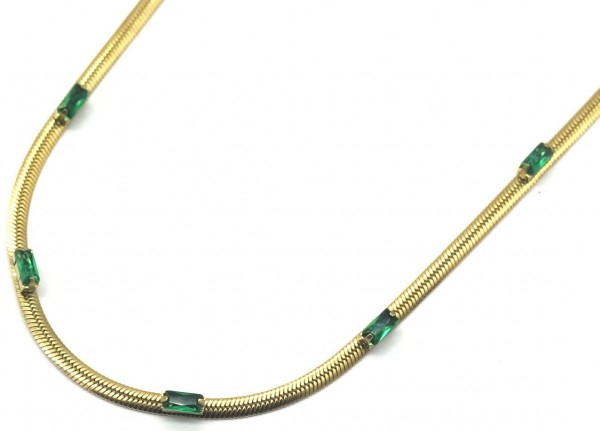 H-F6.4 N090-007G S. Steel Necklace CZ Green 39-44cm