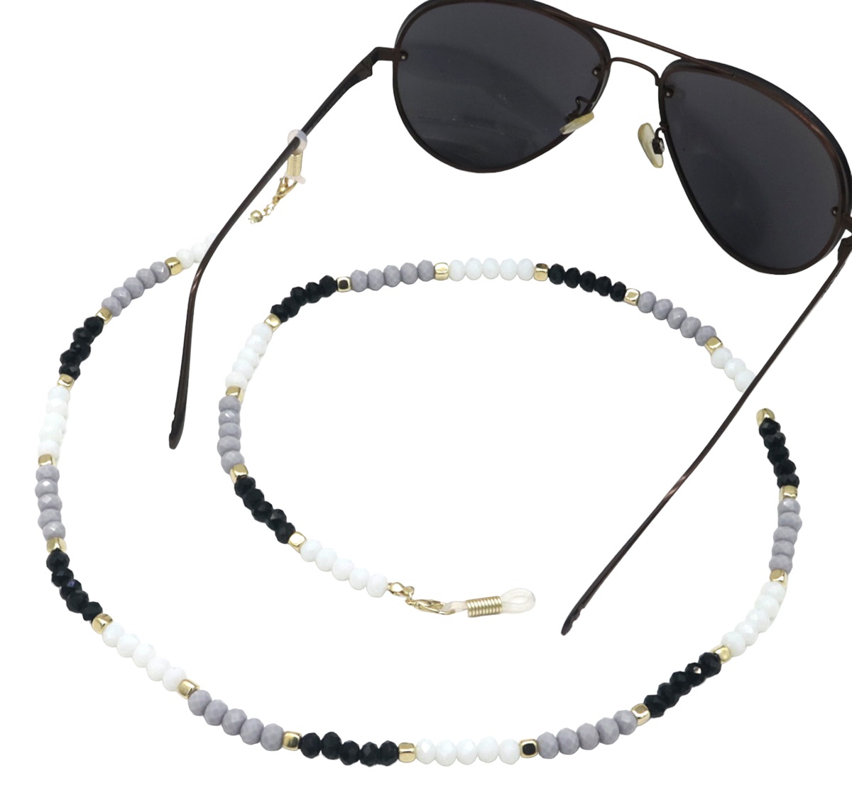 I-B9.2 GL1660-014 Sunglass Chain Faceted Glasssbeads Black