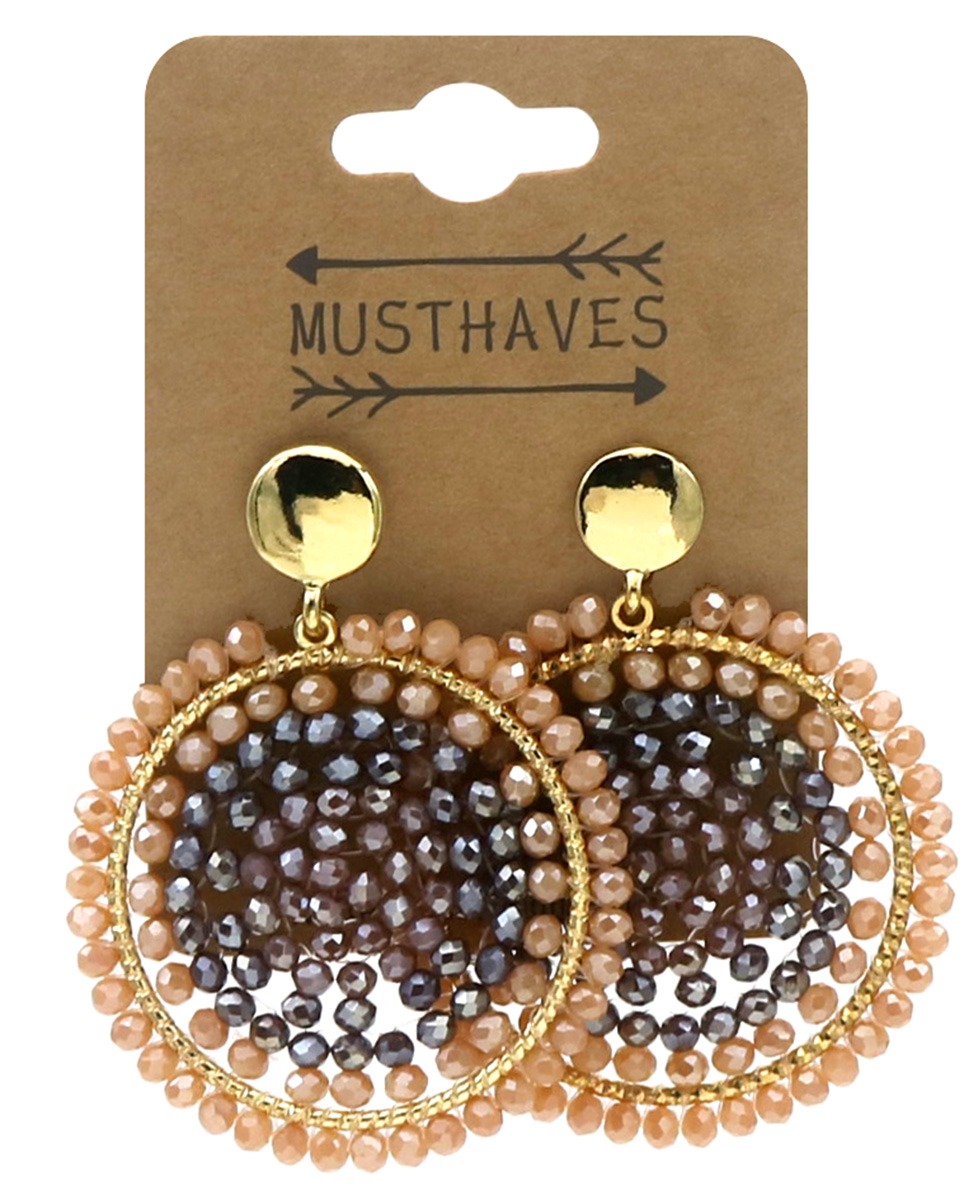 I-C19.1 E2591-131-4 Fashion Earrings Glassbeads 5.5x4cm Brown