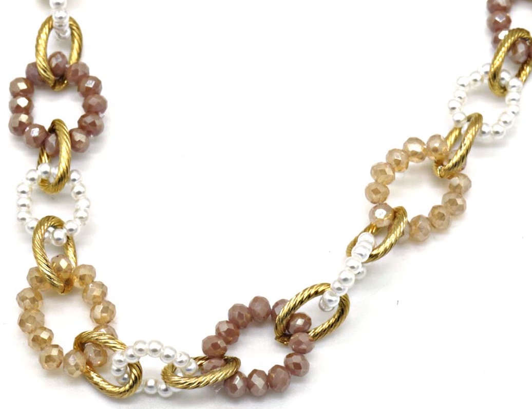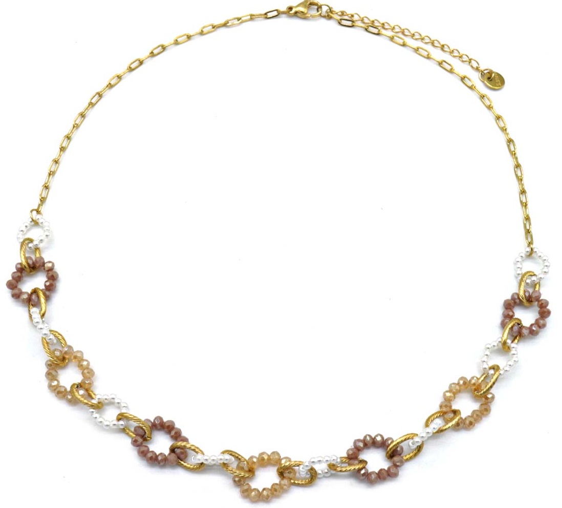 I-E4.1 N221-384 No. 4 S. Steel Necklace Faceted Glassbeads Brown