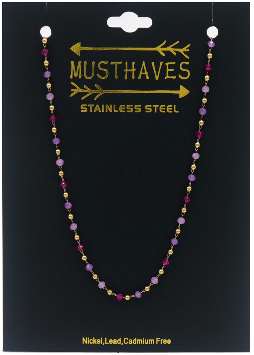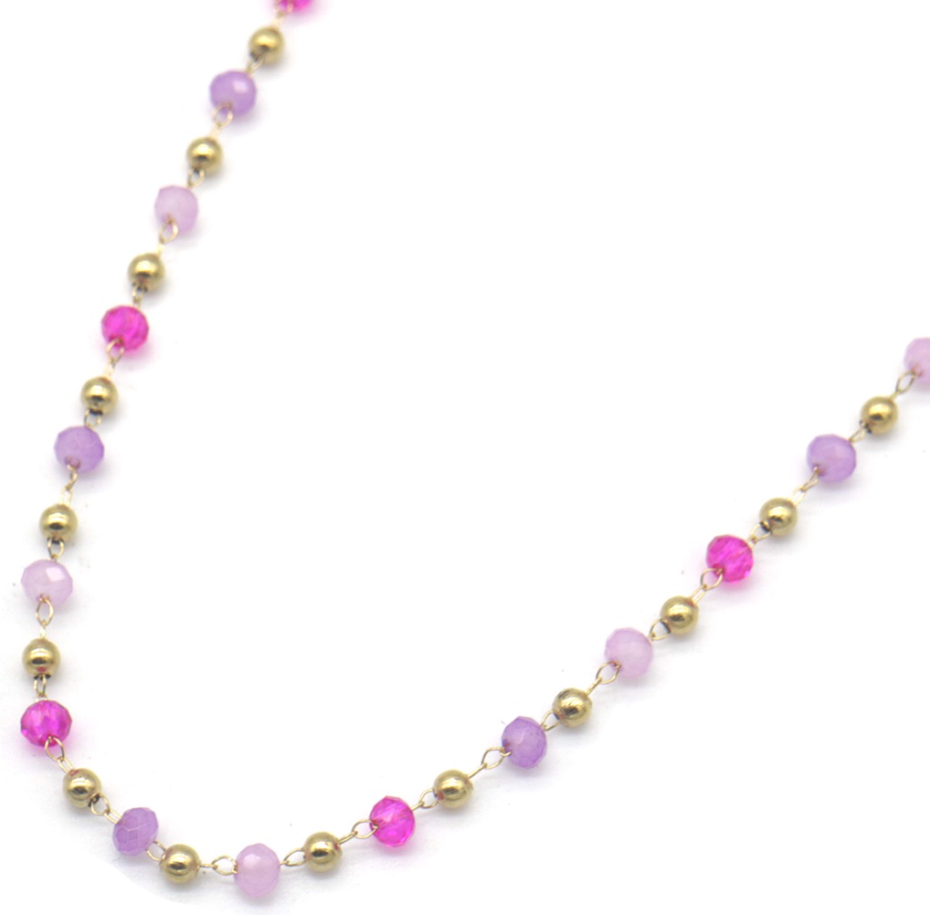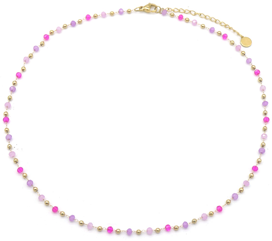 Productinformatie "J-D4.2 N831-006-4 S. Steel Necklace Glass Beads - Purple"