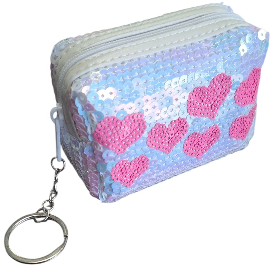 K-D2.1 KY1154-002 Keychain Wallet LOVE Sequins 10x7x4cm White