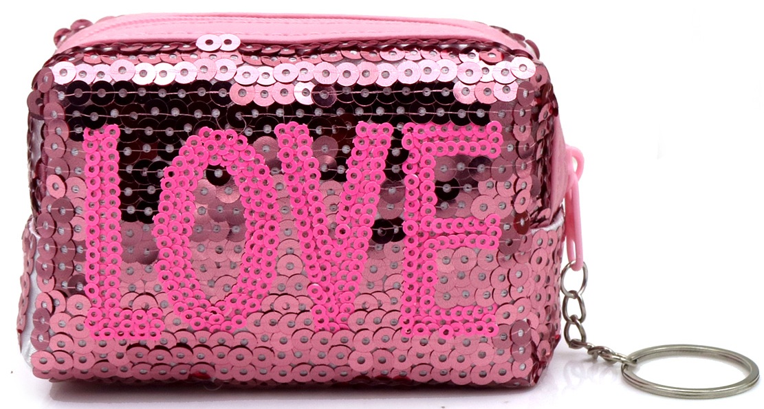 K-D2.2 KY1154-002 Keychain Wallet LOVE Sequins 10x7x4cm Pink