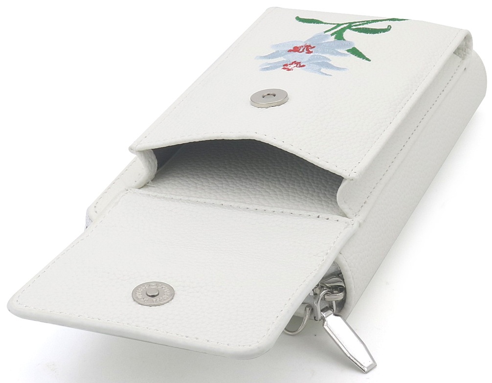 Productinformatie "Q-C8.2 BAG1113-001-2 PU Bag Embroidered Flowers 18x10.5x5cm White"