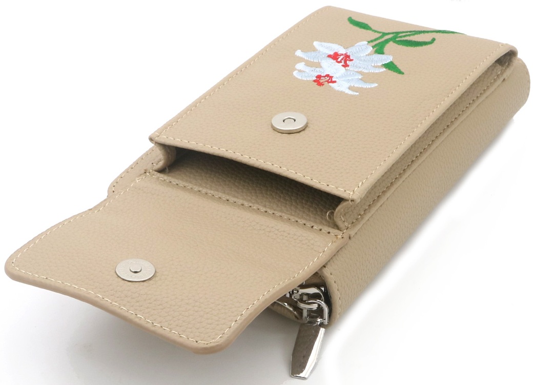Q-D6.1 BAG1113-001-5 PU Bag Embroidered Flowers 18x10.5x5cm Brown