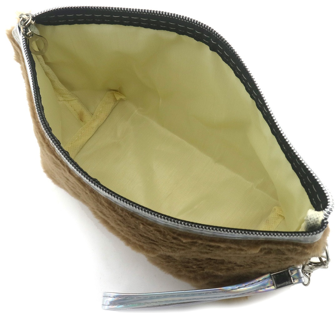 Q-D8.2 BAG1116-003-2 Make Up Bag Fluffy 24x13x8cm Brown
