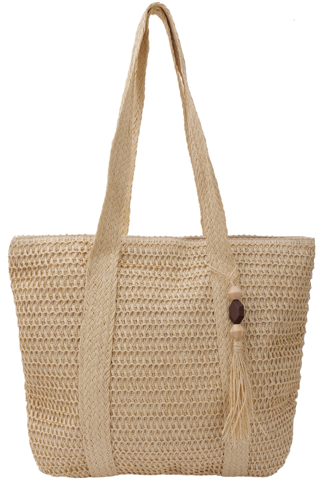 Q-J8.2 BAG1114-001-1 Beach Bag with Tassel 42x39cm Beige