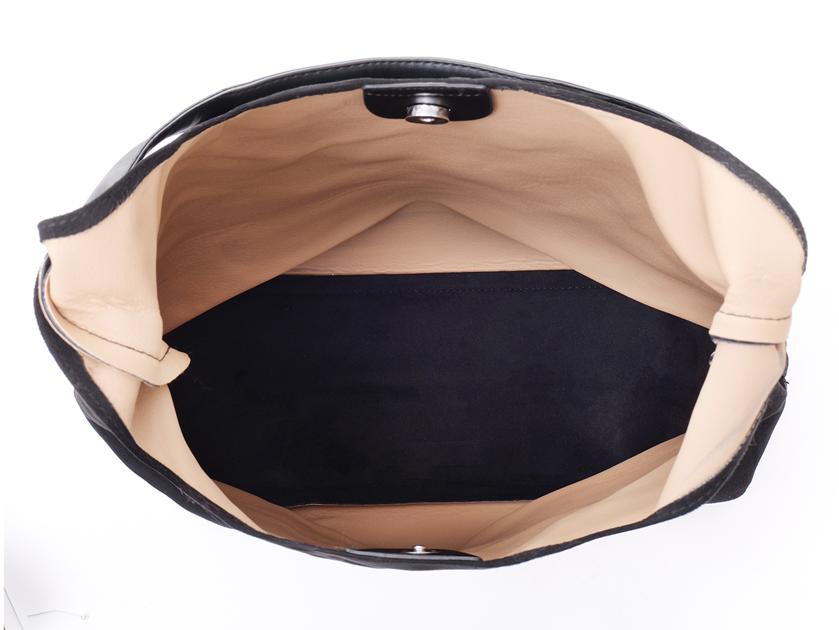 Q-N7.2 BAG1022-001-3 PU Shopper Set Suede Look 43x28x12.5cm Black