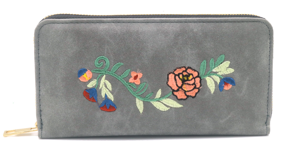 R-A7.2 WALLET1019-002-3 Pu Wallet Flower Embroidery 20x10x2.5cm Grey