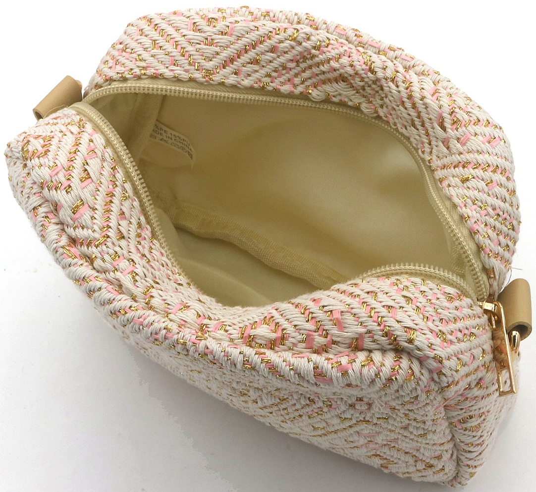 Maak kennis met de R-J3.1 BAG1119-003-2 stoffen tas, een stijlvol en veelzijdig accessoire dat een vleugje sprankeling toevoegt aan uw dagelijkse benodigdheden. Deze chique roze tas heeft een afmeting van 18 x 12,5 x 7 cm en is gemaakt van hoogwaardige stof, die duurzaamheid garandeert en tegelijkertijd een lichtgewicht gevoel behoudt.