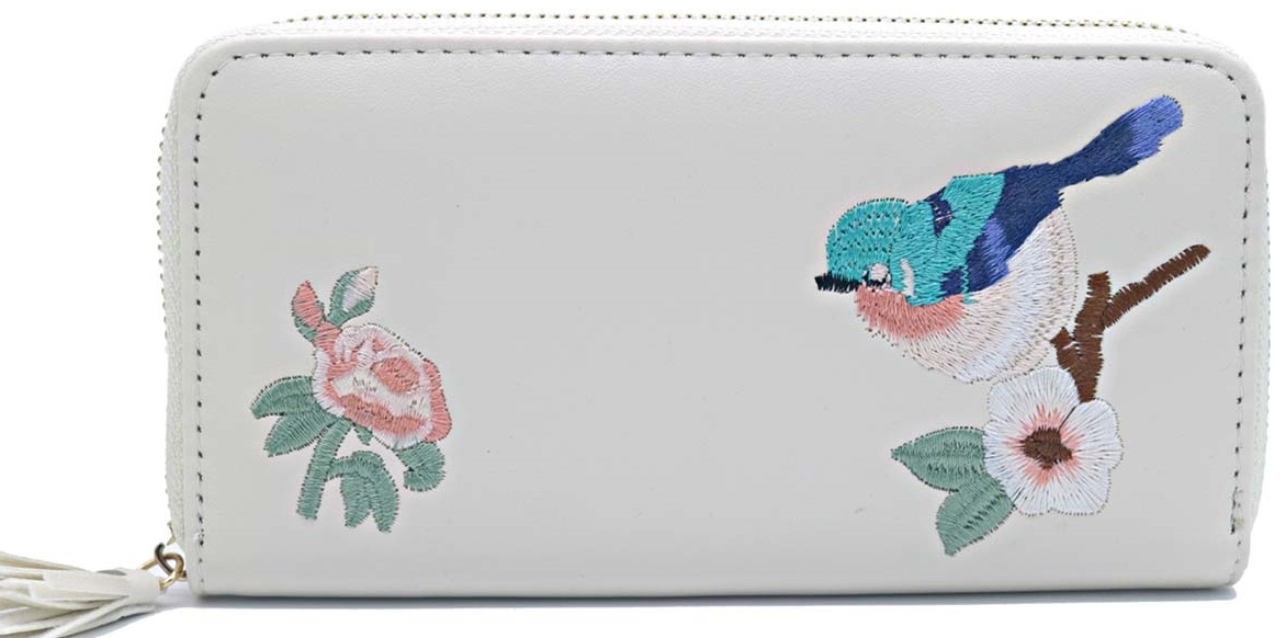X-Q10.3 WALLET1019-003-3 Pu Wallet Roses Embroidery 20x10x2.5cm Grey