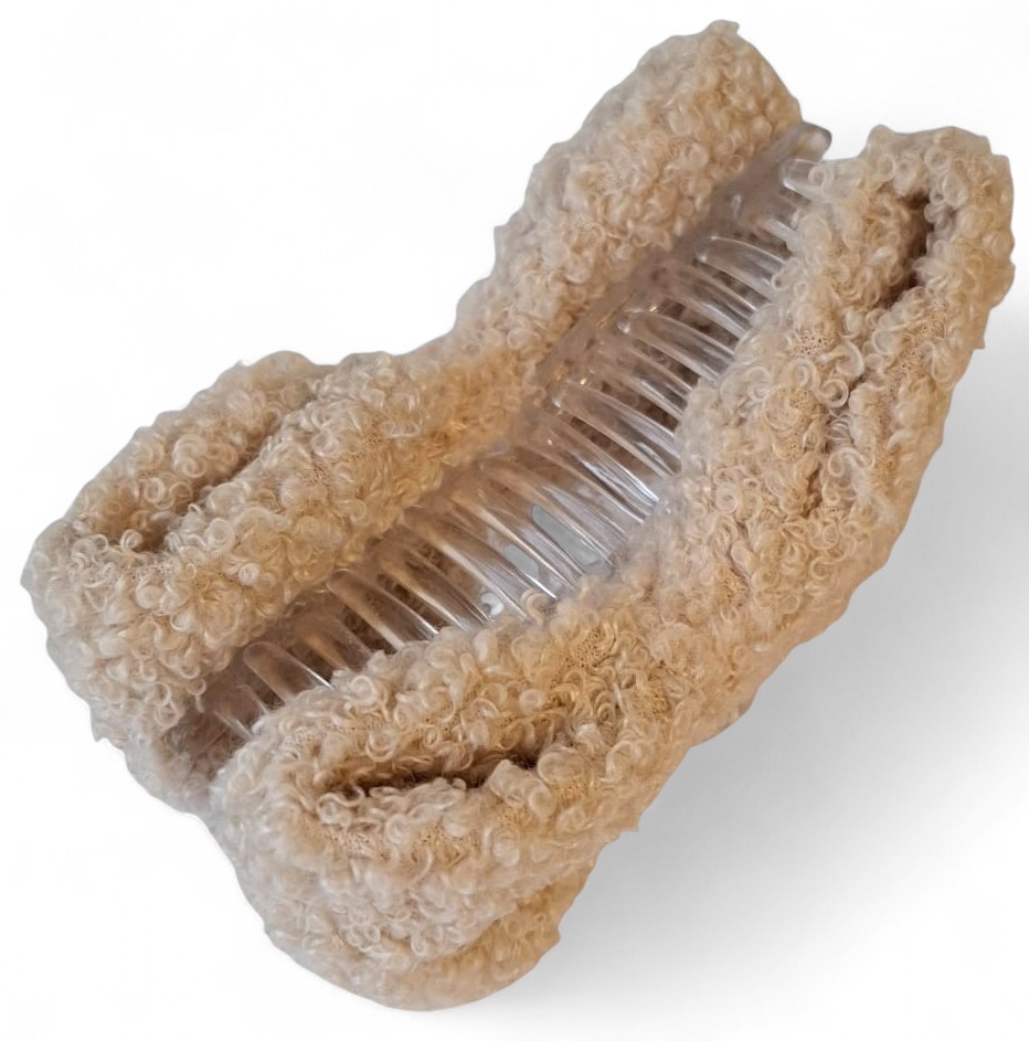 X-H4.1 H1039-021-4 Hair Claw Teddy Bow 10.5cm Beige