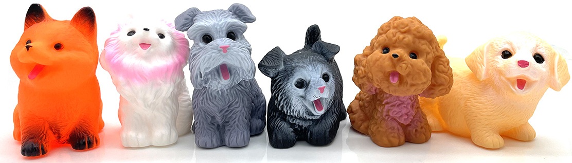 Deze speelse pups zijn gemaakt van hoogwaardig, duurzaam rubber en voelen niet alleen zacht aan, maar zijn ook gebouwd om urenlang fantasierijk spel te weerstaan. Elke hond heeft een uniek ontwerp met een verscheidenheid aan rassen en kleuren, waardoor ze perfect zijn om te verzamelen of cadeau te doen.