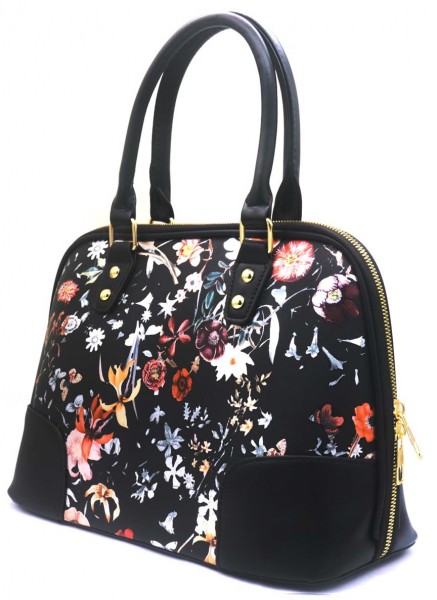 Y-B2.4 BAG734-001 No. 1 PU Bag Floral 30x24x12cm Black