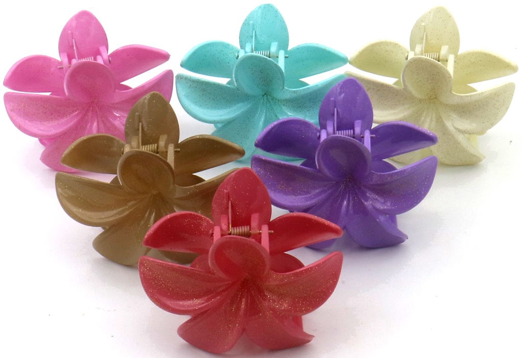 Y-D2.1 H1124-002 Hair Claw 7.5cm Flowers Glitter - 6pcs