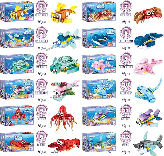 Productinformatie "Y-D2.2 TOY2581-010 Building Blocks Marine Animals - 12pcs in Display"