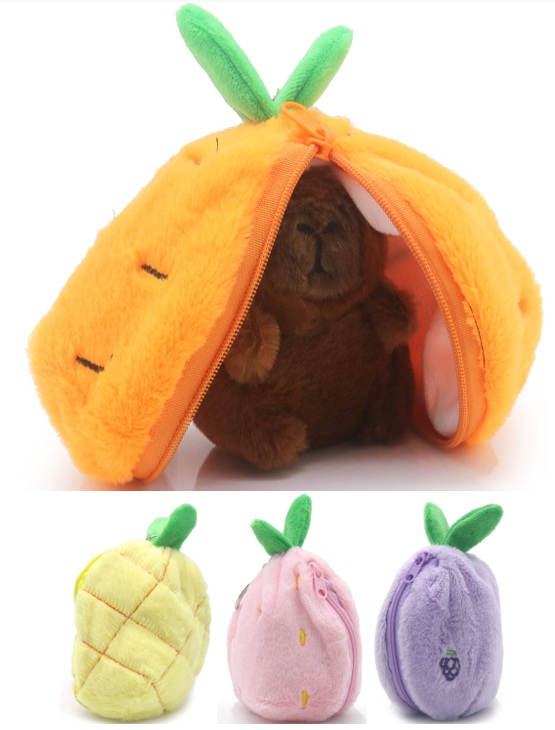 I-C4.2 KY942-003 Plush Capybara in Fruit Keychain 12cm - Mixed Designs - 1pc